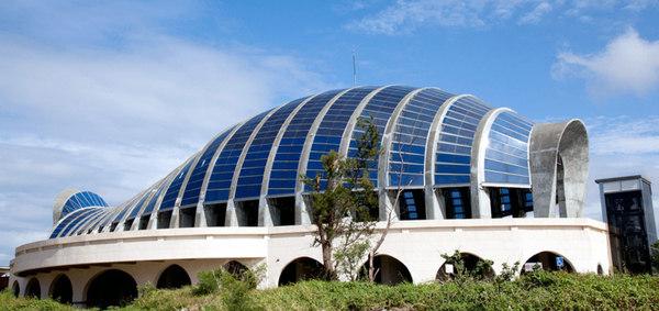 設於屏東縣車城鄉海洋生物博物館的「Solar Top太陽光電建築經典示範系統」今天啟用,鯨魚造型光電系統,全球唯一。